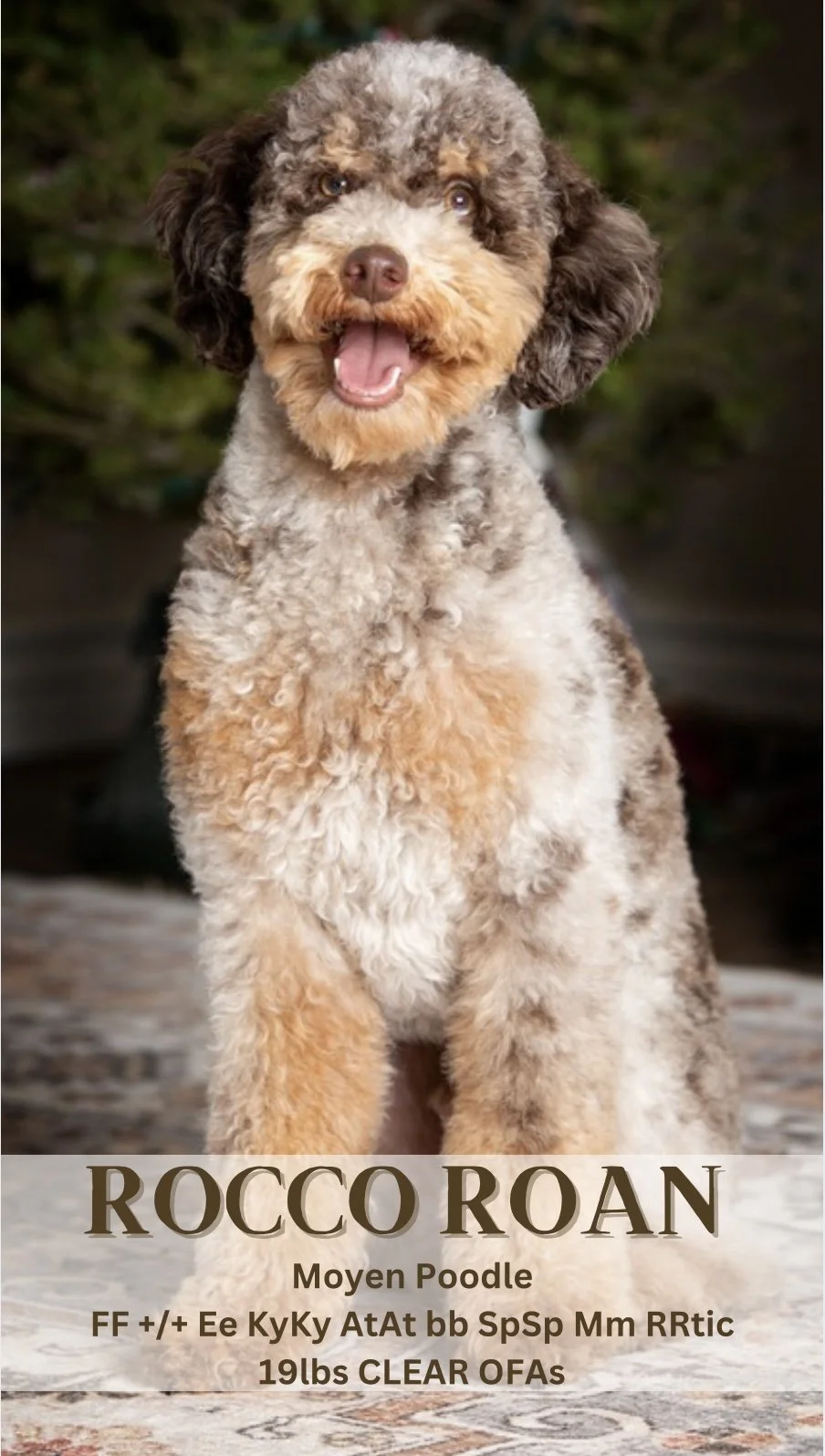 Mr. Roan himself! AKC Poodle. Rocco is one of a kind, to my knowledge there is not another stud out there in the U.S. like him! What’s even better, is his sweet tender natured personality is just as amazing as his genetics. There truly is no other like him! Tested through Animal Genetics, Orivet, and Embark.